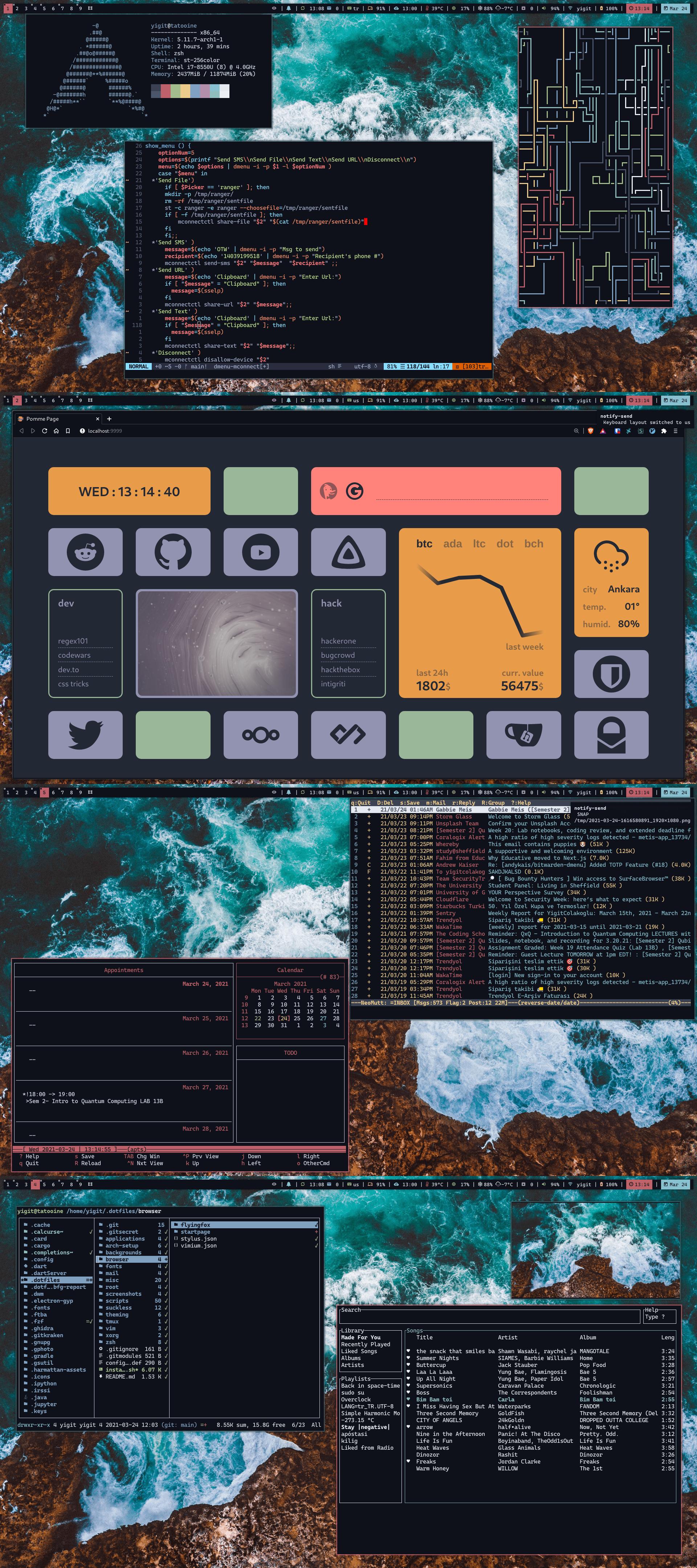 - Dmenu for restarting certain processes like dwm, dwmblocks, dunst, mconnect