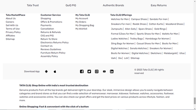 Tata Cliq is an Indian e-commerce company based in Mumbai, India. It is owned by Tata UniStore Limited, of Tata Group. TataCLiQ operates in categories such as Electronics, Fashion, Footwear, and Accessories.
