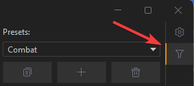The Default preset does not support modifications. If you wish to toggle filters, you must make a filter preset of your choice. You can have an unlimited amount of filter presets, and they are saved on your PC.