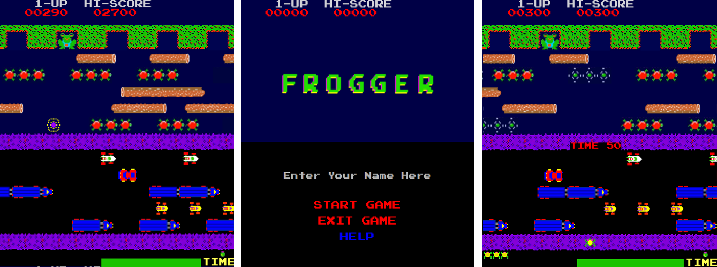 - Normal Game Screen - with time indicator for seconds left frogging arrived home last time