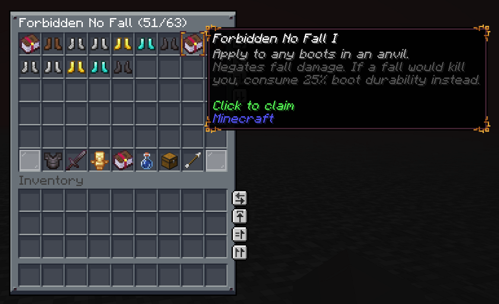 - Anvil application flow for helmets, chestplates, and boots.