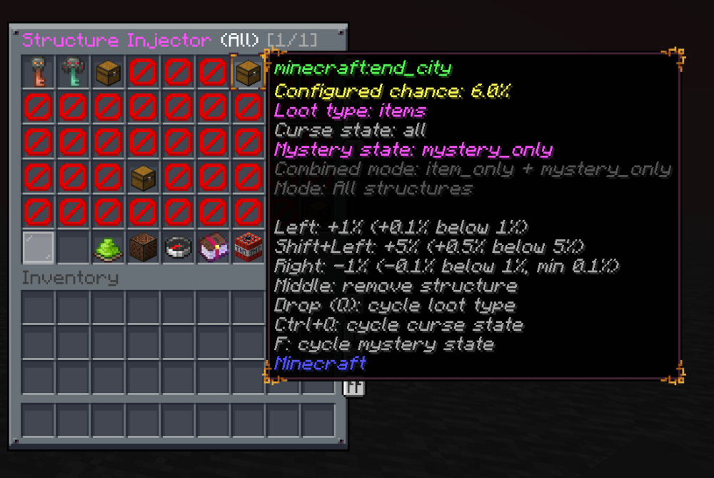 - Optional structure loot injector (config + command + GUI editor) for random forbidden books in selected structures.