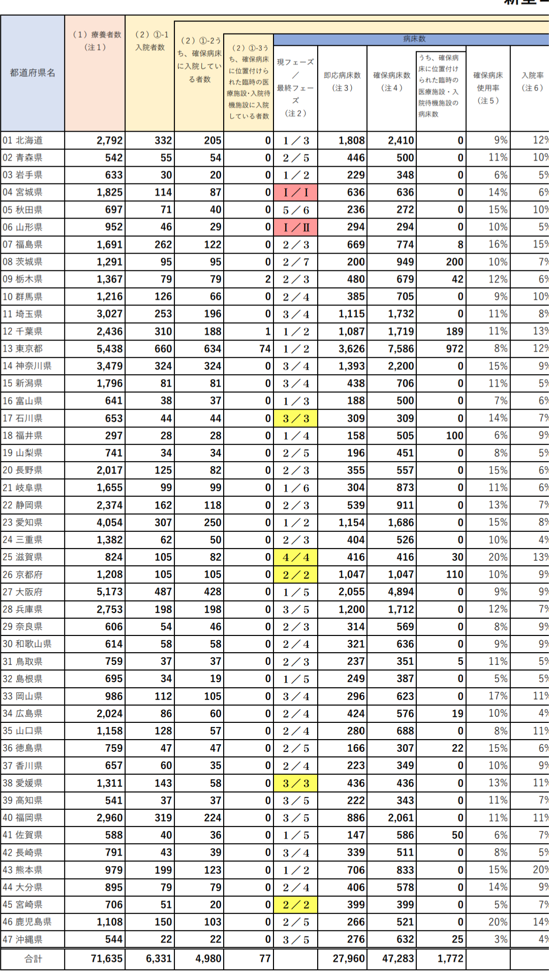 いつも新型コロナウイルス対策ダッシュボードの方愛用させてもらってます。運営に関わってくださっている皆様ありがとうございます。 本題なのですが、次のように「新型コロナウイルス対策病床数オープンデータ」だと病床使用率が100%超えているものが1つもないが、ダッシュボードの方をみるとほとんどが100%を超えている状況なので、表示と元データに差が見られました。 「新型コロナウイルス対策病床数オープンデータ」を使用の3月9日時点の病床使用率  3月11日時点のダッシュボードの表示