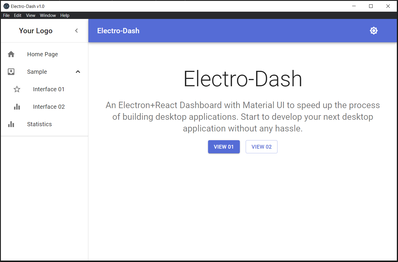 Electro-Dash is a clean and sleek dashboard template developed with electron.js and react.js.