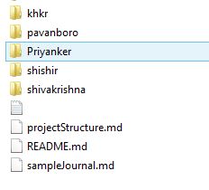 Each candidate will have a folder by his name, where they have their journal file and folders corresponding to assignments.