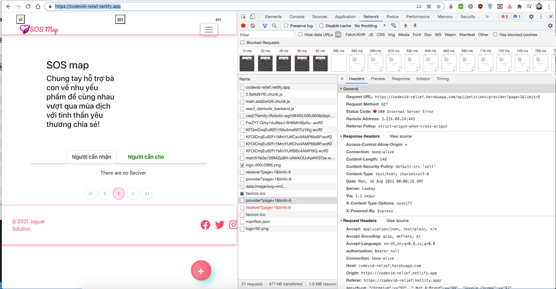 If we look at the app in production right now we'll see that the api fails.