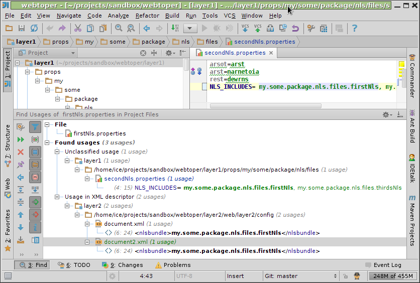 - 'Find usages' of NLS bundles, components, actions,