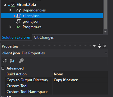 With the application created, in the Den.Dev.Grunt.Zeta project create a client.json file, that has the following contents: