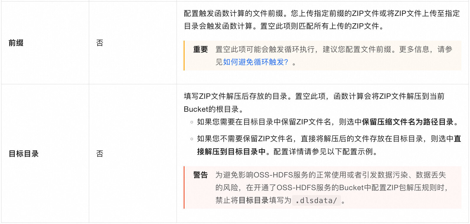 匹配解压规则的ZIP文件在上传到OSS后,会自动触发函数计算进行解压。文件解压完成后,会存储至OSS的指定目录中。