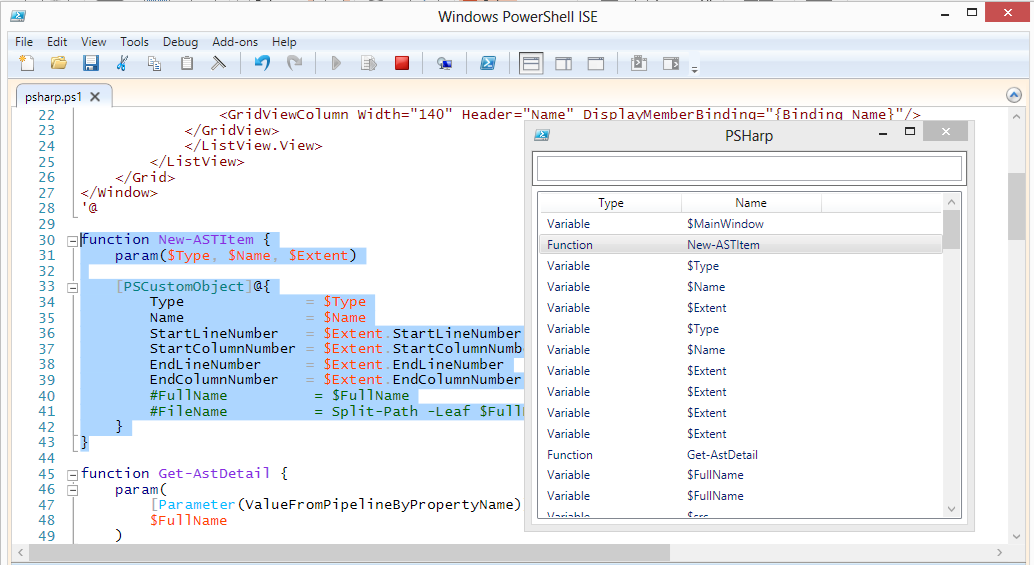 iex (new-object System.Net.WebClient).DownloadString('https://raw.github.com/dfinke/PSharp/master/Install.ps1')- Fast navigation