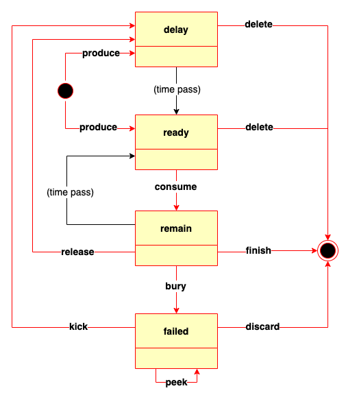 A job in Grape during its life it can be in one of four states: "delay", "ready", "remain", or "failed".