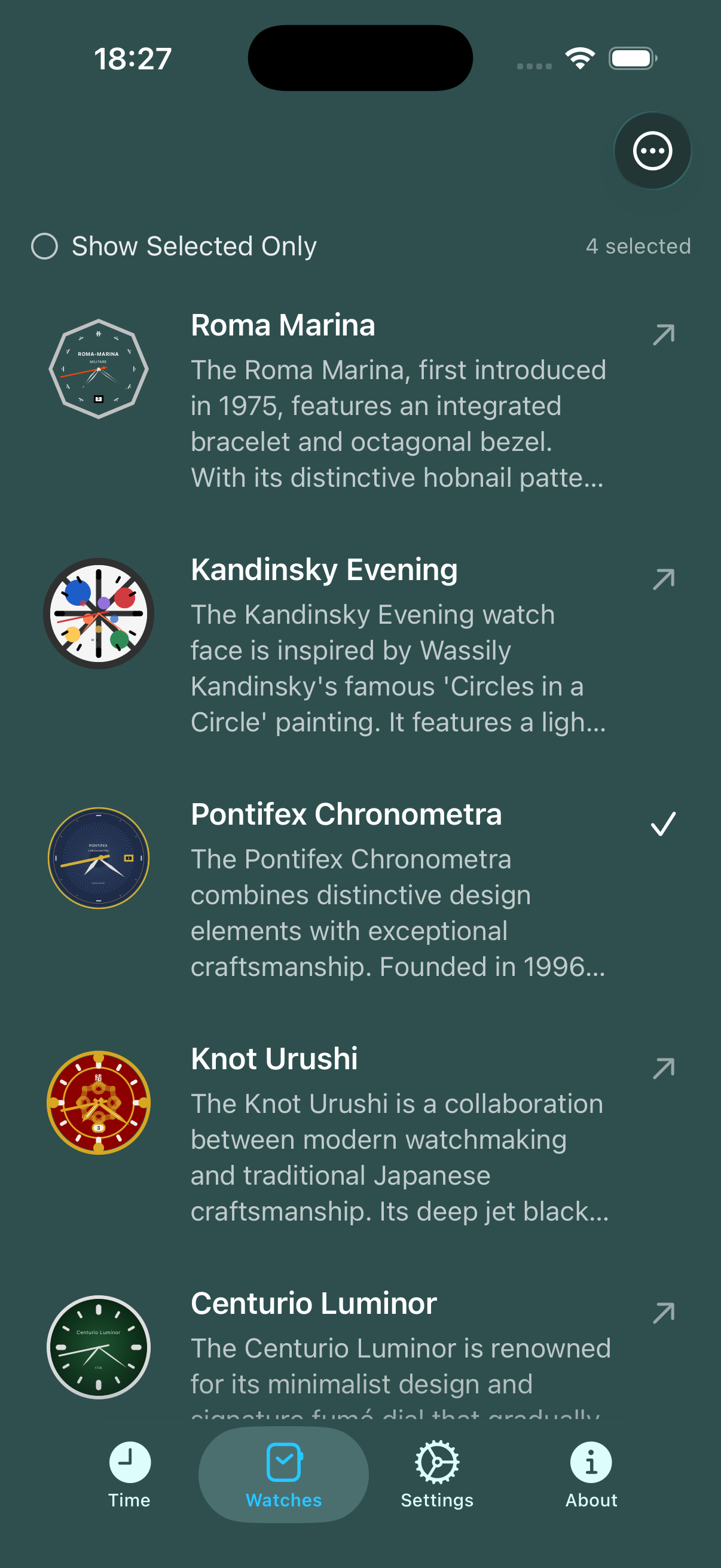 | Time Screen | Watch List Screen | Watch Detail Screen |