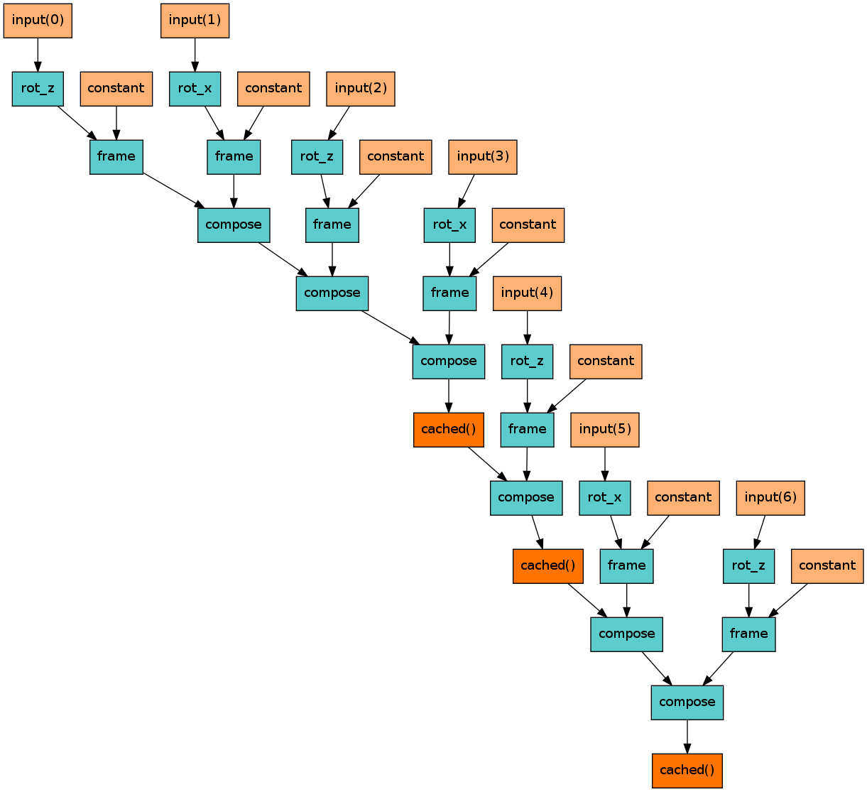 Fig. 2 Expression graph for the kinematic chain of a KUKA LWR robot.