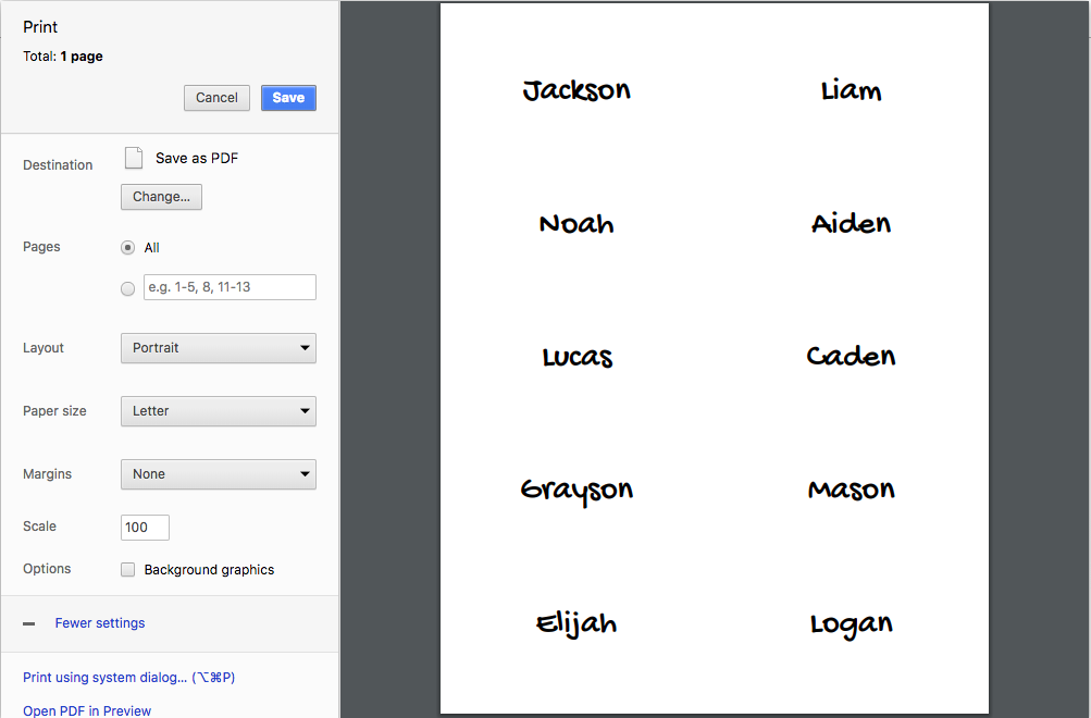 This library makes it easy to create labels which can be printed on-to a 10 label avery sheet.