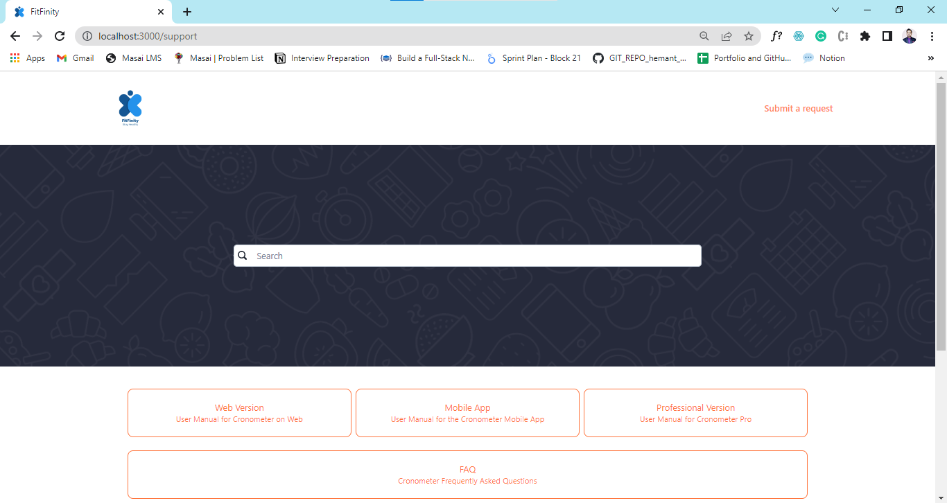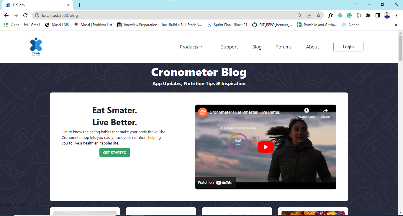 This was a collaborative construct week project at Masai School. Goal behind the project was to create a full stack clone of the Cronometer website as close as possible to the original one with all the major functionalities of this website, such as Authentication, Landing Page & Dashboard for tracking the nutritions. This project was built by a team of 4 developers in 5 Days.