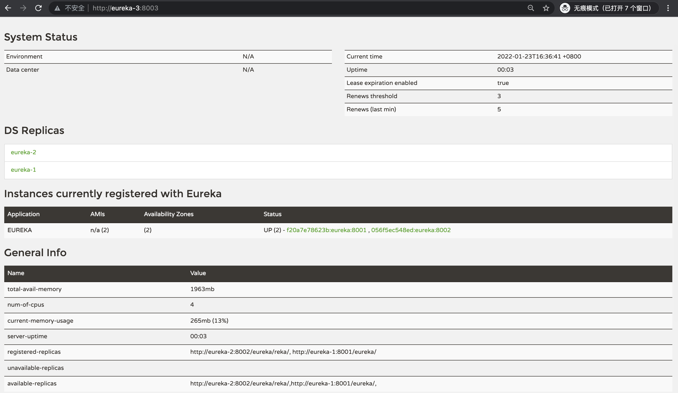- EUREKA_CLIENT_SERVICEURL_DEFAULTZONE: http://eureka-2:8002/eureka/,http://eureka-3:8003/eureka/