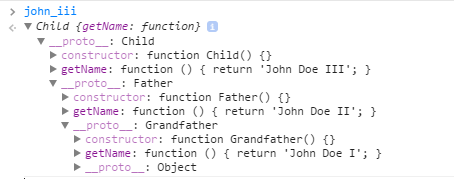 Child.prototype.getName = function () { return 'John Doe III'; };