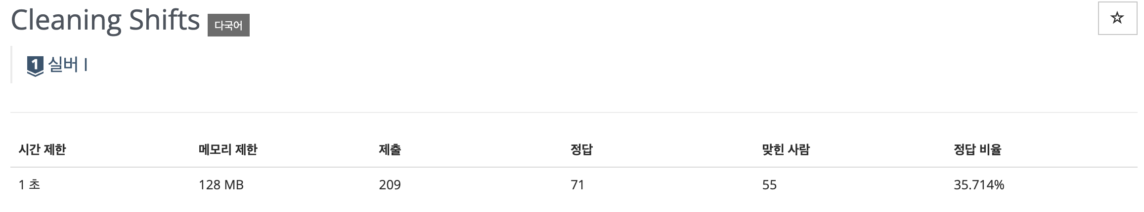 문제는 약간 회의실 배정 문제와 비슷합니다.
