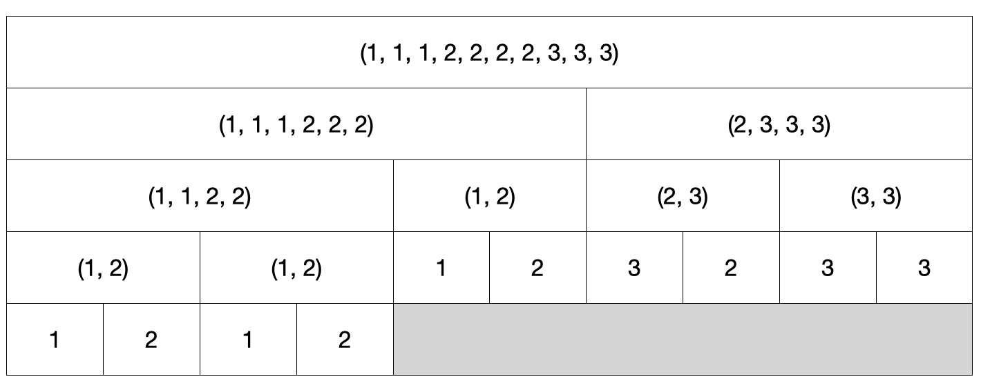 머지소트 트리를 구현하면 아래와 같이 나온다.