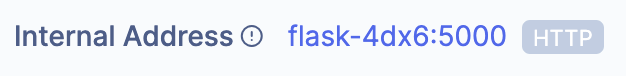 You can find them from the Internal Address in your service dashboard. In this example, SCRAPE_SERVICE_NAME is flask-4dx6 and the SCRAPE_SERVICE_PORT is 5000.