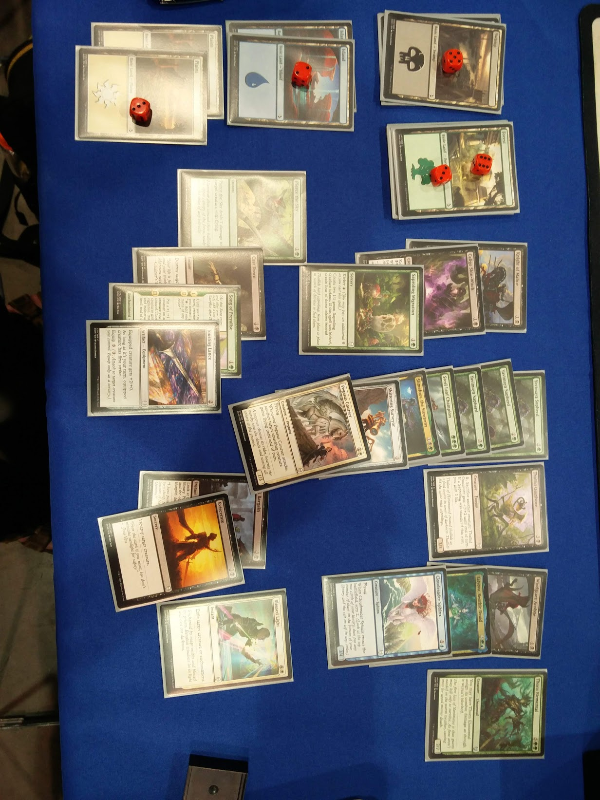 Compare: 9 forest/5 swamp/2 island/2 plains (splashing for Taytova UG3, Cloudreader Sphinx U4, Blessed Light W4, Pegasus Courser 2W).