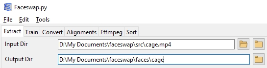 python faceswap.py extract -i ~/faceswap/src/cage.mp4 -o ~/faceswap/faces/cageGUI:
