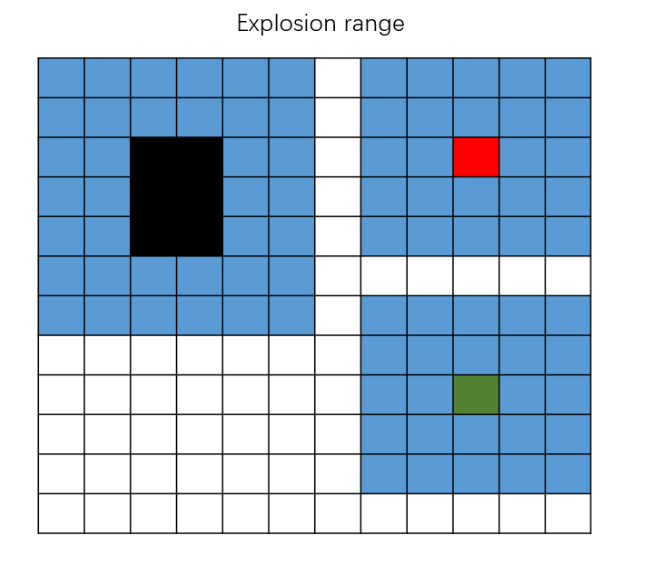 When an oil drum or a tank is destroyed, it will explode and hit a 5x5 area around it. When an armory is destroyed, it will explode and hit a 6x7 (or 7x6) area around it. And the explosion can spread, i.e., an explosion can trigger another explosion.