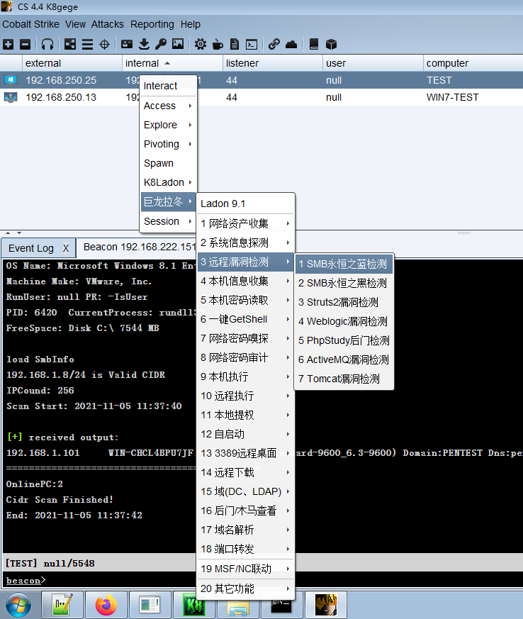 本文仅是Ladon简单使用例子,Cobalt Strike或PowerShell版用法一致。