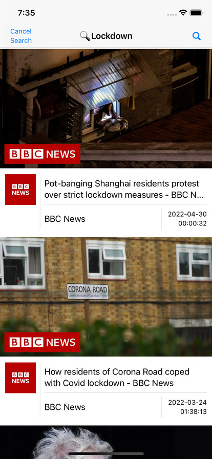 As soon as the search results are displayed, the app's title will be replaced with the search term. Additionally, scrolling down to the bottom of the screen will trigger the loading of more content, filtered by the search term. However, if there are no videos with titles that match the search term, the loading process may appear to be stuck. To resolve this, try scrolling up and down a few times. If you want to clear the search results, tap the "Cancel Search" button.