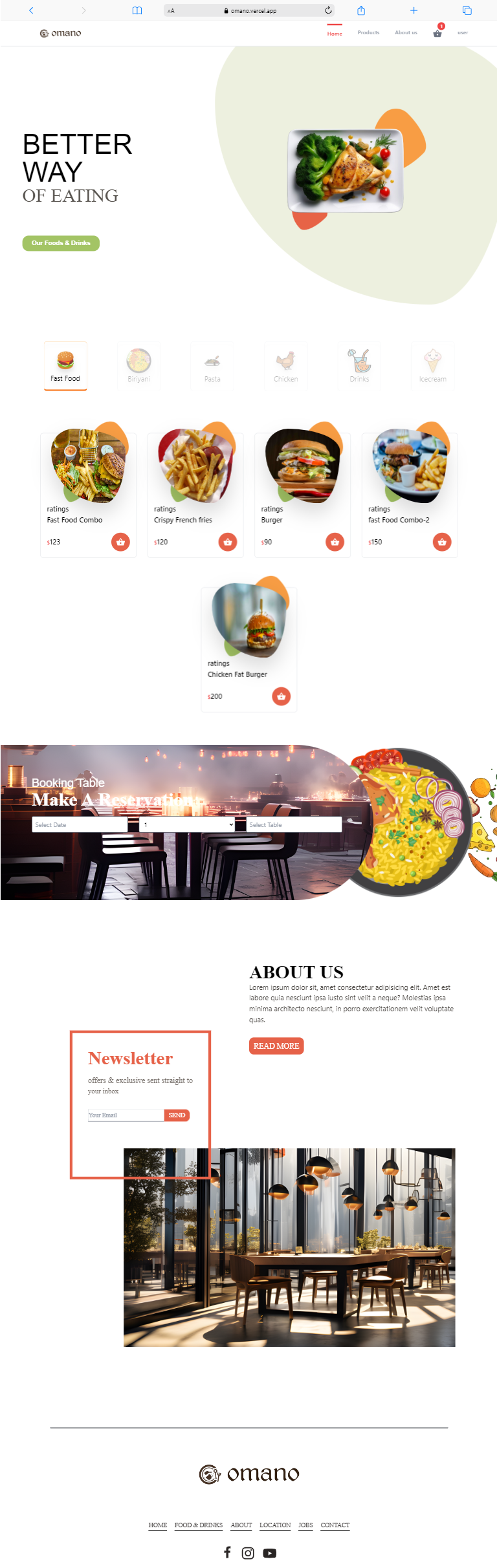 - Search option in food page