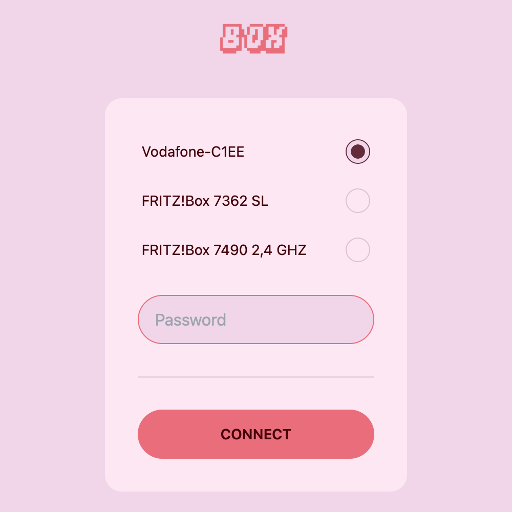 - Connect to this portal with your device. The Box will display a QR code and the hostname (