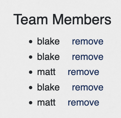 I first noticed this on the team creation screen. I entered blake,matt because I didn’t know I would be added automatically. So there were 2 blakes listed. Removing one didn’t work and produced a generic "something went wrong" error.