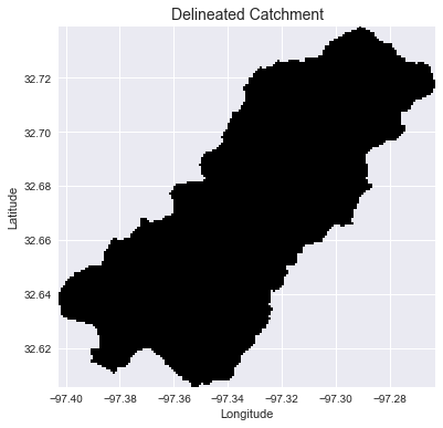 plt.title('Delineated Catchment', size=14)# Extract river network