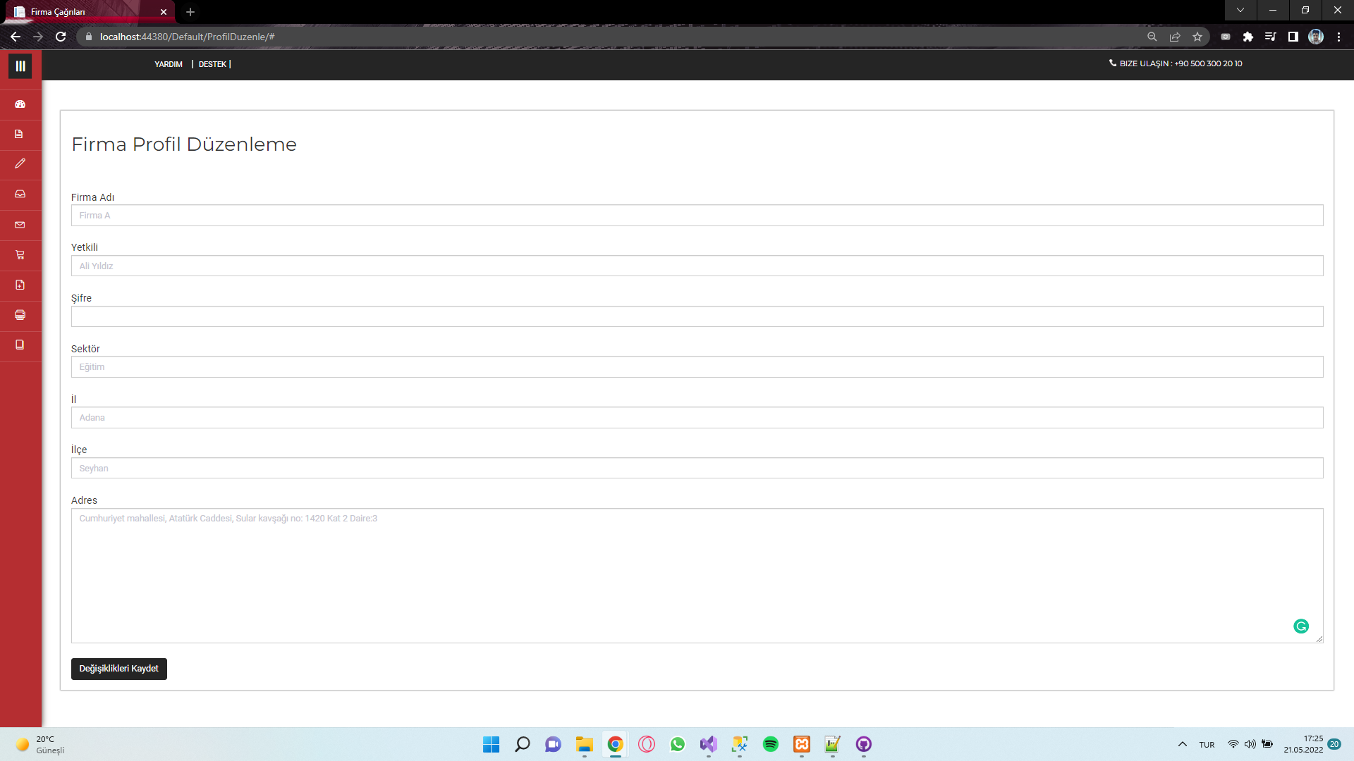 Job Tracking Web Panel MVC5 You can check it desktop application Used Technologies Frontend HTML CSS Bootstrap Javascript jQuery Backend ASP.NET MVC5 Database MS SQL ORM Entity Framework 6 A Few Photos Company Login Page Company Index Company Update Profile Company Active Tasks Company Task Detail Company Open Task Links Course License MIT