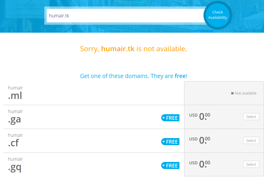 So it’s a pretty ridiculous bug. All you have to do is add .tk or whichever TLD you prefer in the search bar. This also changes the Get it now! button to Select.