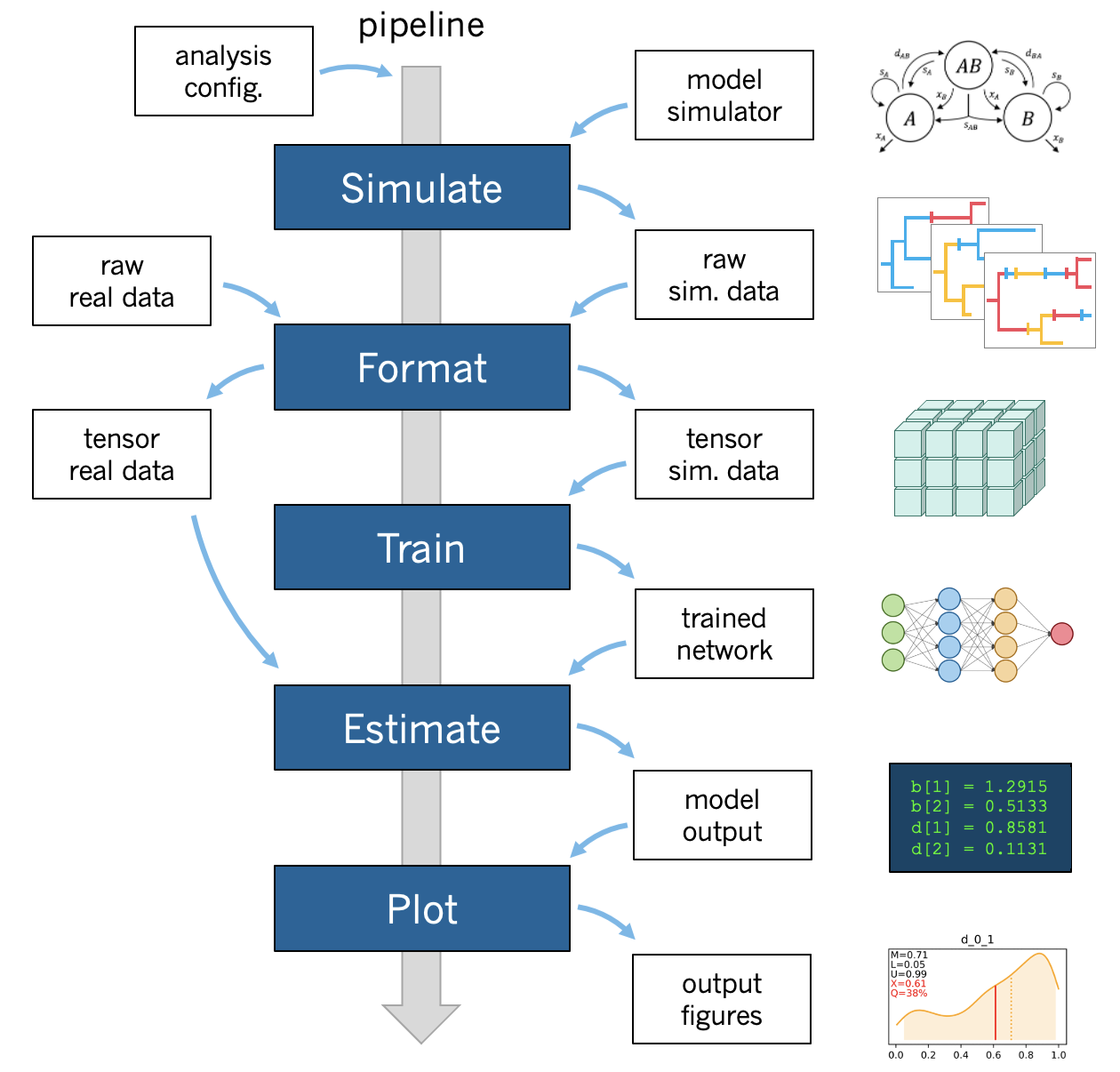 A standard phyddle analysis performs the following tasks for you: