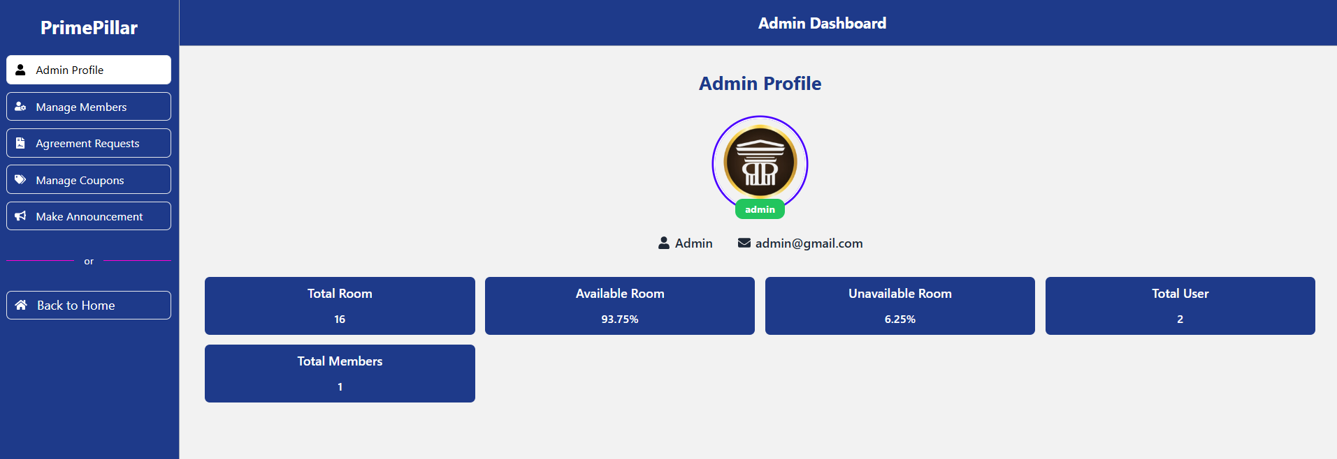 Welcome to PrimePillar, a comprehensive building management system tailored to manage a single building efficiently. This website provides a centralized platform for the building owner (Admin), residents (Members), and general visitors (Users) to streamline building-related activities. From managing apartment availability and agreements to handling payments and announcements, PrimePillar offers a robust solution to simplify operations while ensuring transparency and convenience. With role-based dashboards, interactive features, and intuitive interfaces, PrimePillar is designed to meet the unique needs of building management and enhance the living experience.