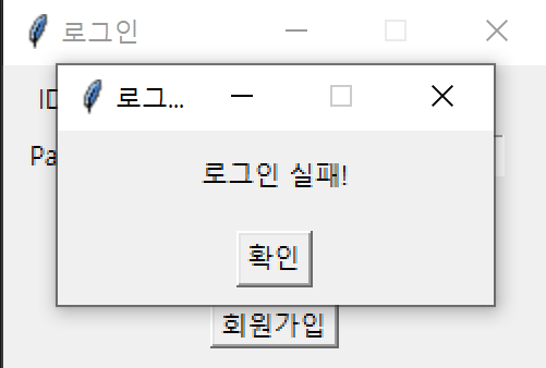 로그인에 실패했을 경우 다음과 같은 경고창이 뜹니다.