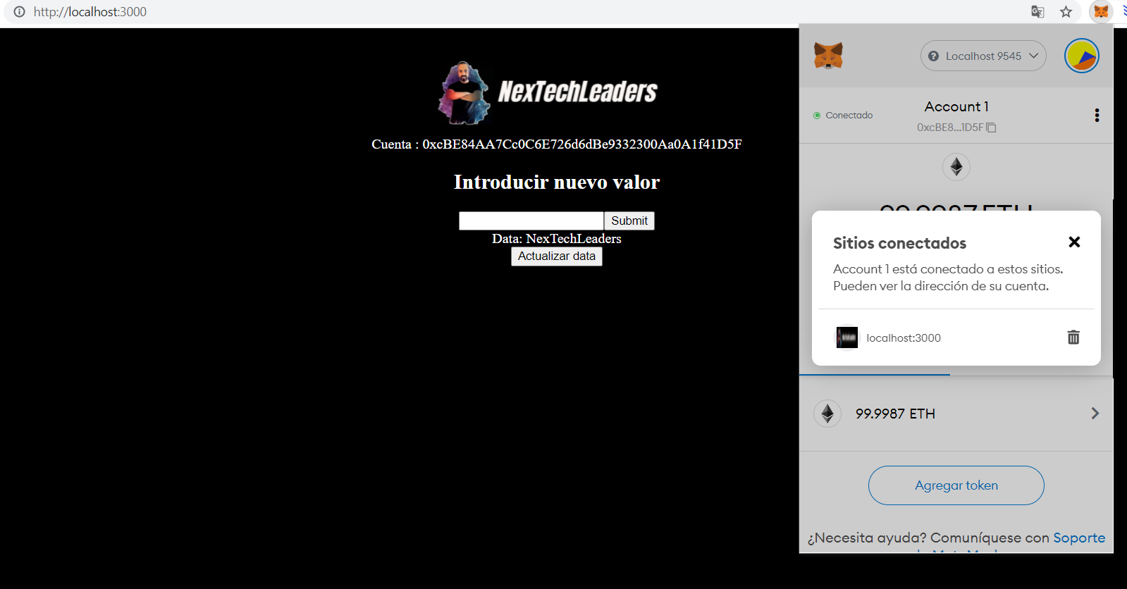 Proyecto completo de Aplicación Descentralizada (DAPP) con un smart contract de solidity en el cual se nos enseña como almacenar una variable y luego mostrarla en nuestro frontend. En este caso, tambien utilizamos la conexion con la wallet de Metamask para conectarnos a la DAPP y confirmar las transacciones.