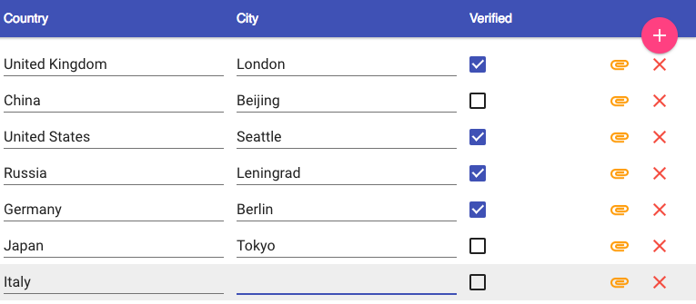 The generic stuff are taken care off internally, i.e the delete row buttons, add new row button, general CRUD functionality and some very generic list CSS. The Shadow DOM encapsulation principles apply as usual.