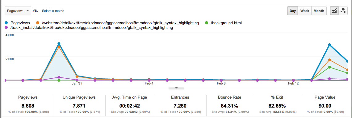 - Google Analytics: http://developer.chrome.com/extensions/tut_analytics.html -- make data publicly accessible, somehow.