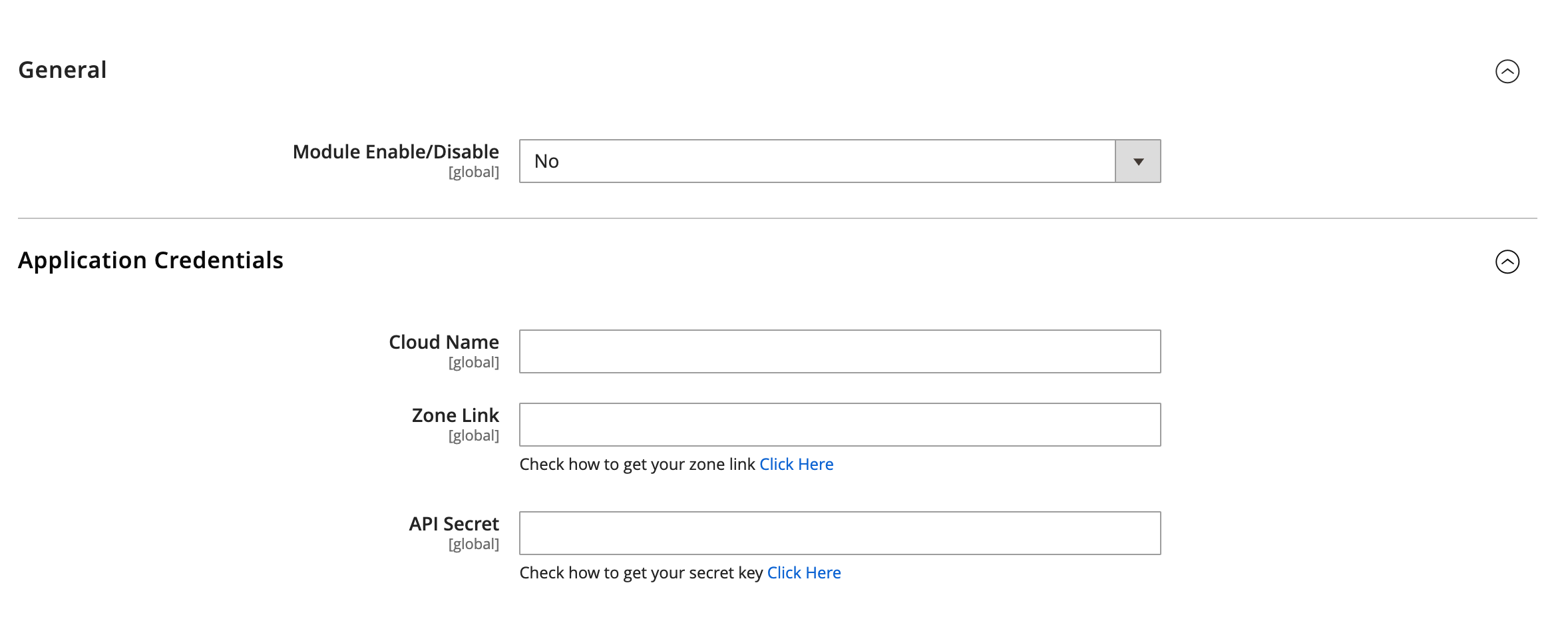 Configure the module here like Enable/Disable, Cloud Name, Zone link etc