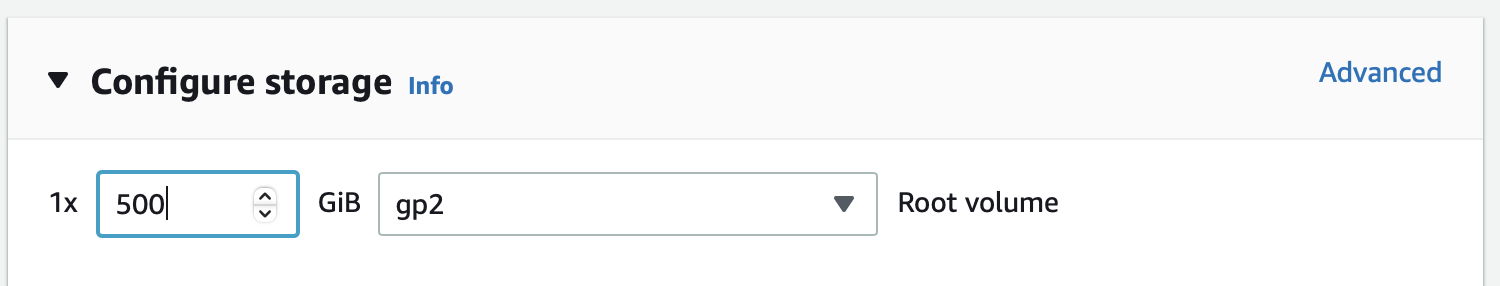 Finally, we need storage! We'll go ahead and give ourselves the 500GB required: