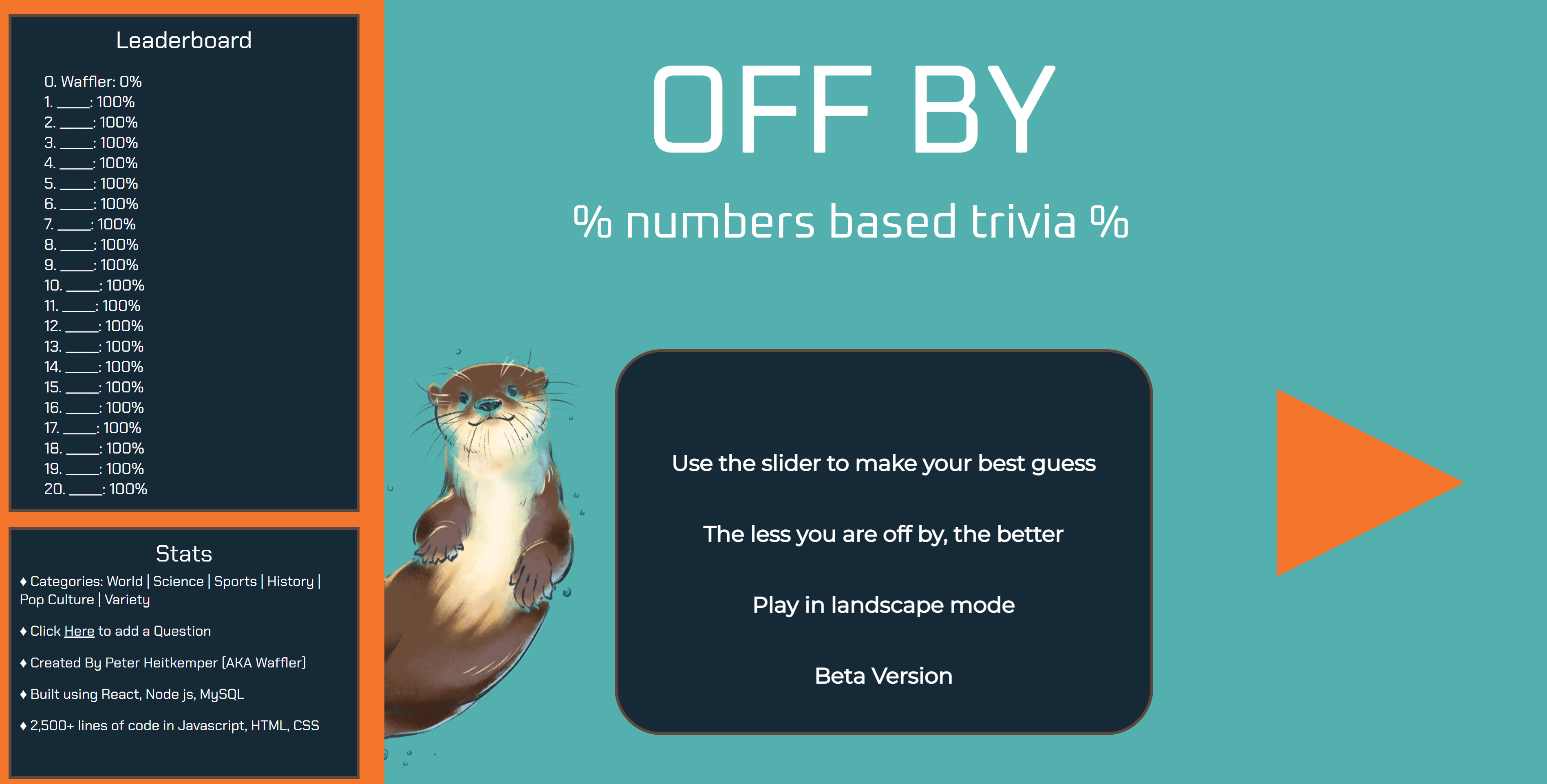 My code intentionally has no license to preserve copyright protection. Off By was exclusivly created by Peter Heitkemper.