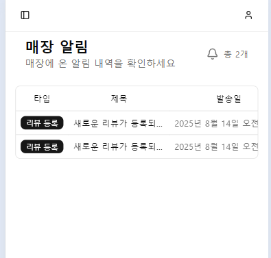 - 주문 상태 변경, 리뷰 등록 등 푸시 알림