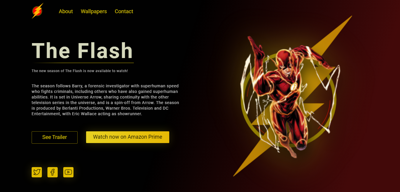 Para o desenvolvimento da interface The Flash utilizei HTML, CSS, JavaScript e segui as diretrizes o protótipo The Flash do Designer Pedro Murilo, além de trabalhar em equipe com o designer para o desenvolvimento do Design Responsivo, das animações e interações.