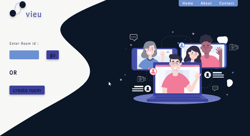 Vieu is a video chat application made using React powered by webRTC, and uses socket.io as the signaling server on the backend.