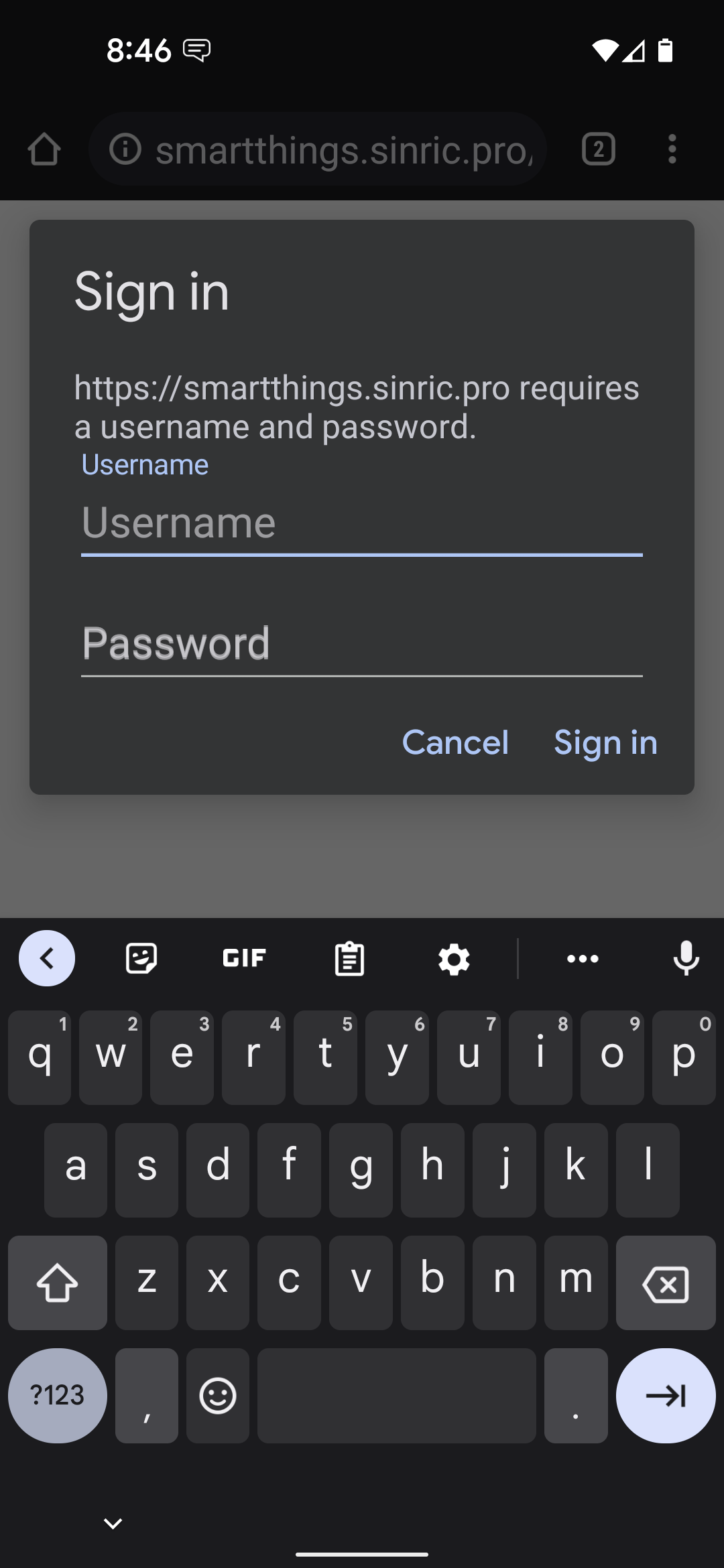 When attempting to add Sinric Pro to Devices, I get a logon screen for https://smarthings.sinric.pro.