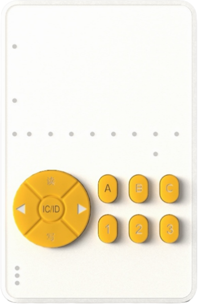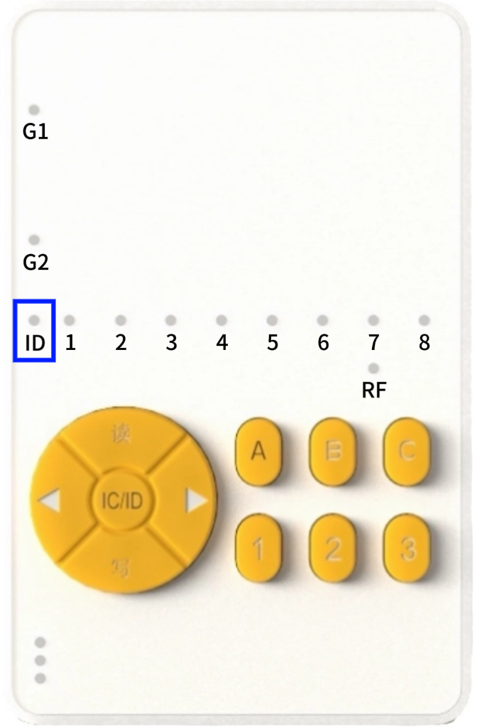 熊猫三代支持ID卡的读写操作,当ID指示灯亮起即可对ID卡脱机读写,或者表明当前卡位为模拟ID卡模式。该灯不亮的时候表明处于IC卡模式。通过短按中间的“IC/ID”按键即可切换IC和ID模式。