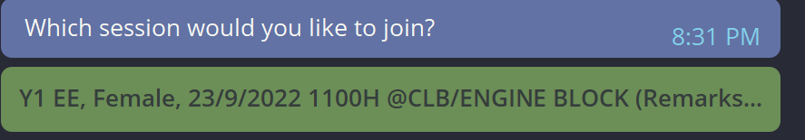 Remarks can't be seen by the users. Suggested solution: Start a new line for the remarks. For example, the grouping message should be like: "Y1, female, EE, 1100H, @CLB Remarks: xxxx"